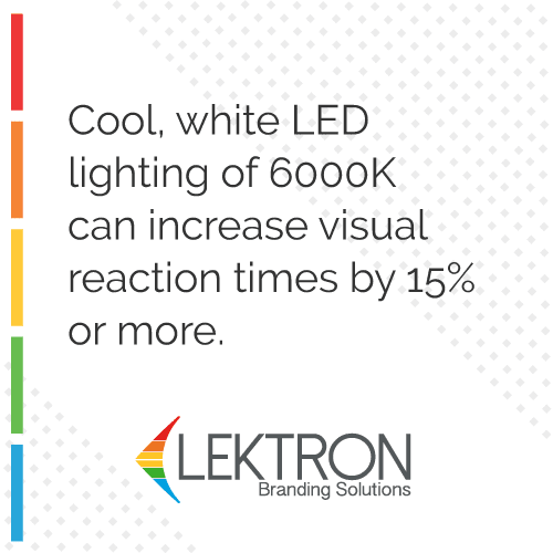 In addition to productivity, however, are the profound benefits that cool white lighting (6000k) has on increasing visual processing speed and visual reaction times — often up to 15% or more.